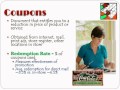 - Coupons: kortingsbonnen die gebruikt kunnen worden voor aankoop;